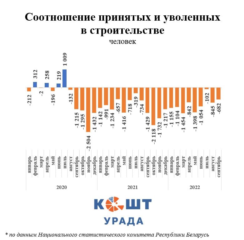 «В чем причина произошедшего? Как мы говорили раньше, высокие темпы строительства при здоровой экономике — признак долгосрочных позитивных ожиданий. В августе 2020-го в Беларуси позитивные ожидания закончились. С этого времени большинство населения, бизнеса живут сегодняшним днем, или, если хотите — выживают.