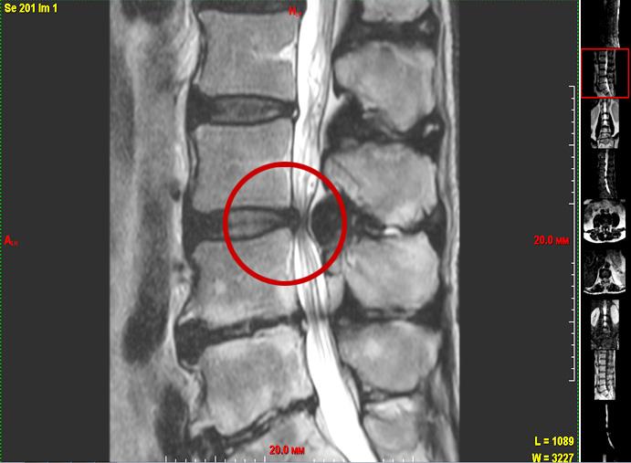 — Оно уменьшается по объему и перестает выполнять роль амортизатора. Нагрузка начинает падать на фиброзное кольцо, которое сзади наиболее тонкое. В этом месте оно быстрее трескается, и в эти трещины начинает выдавливаться пульпозное ядро. Если оно выпячивается немного, до 6 миллиметров, мы говорим о протрузии (выпячивании). Если происходит выпадение грыжи диска — это пролапс.